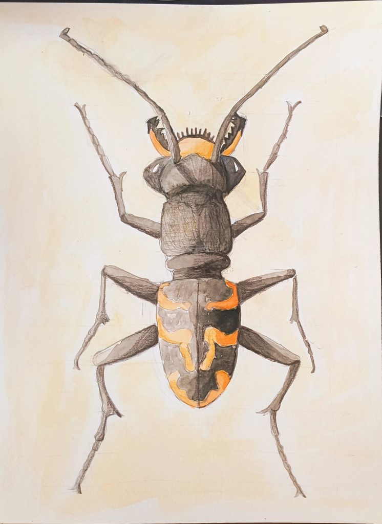 Anax imperator / Libélula emperador Grafito Ficux Carita L. / Higuera GrafitoCephalota Hispanica/ escarabajo tigre ibérico Acuarela y lápiz de maderaPachychila hispanicus / escarabajo ( uno más de la cantidad de especies de escarabajos en la península ibérica) Lápiz de color